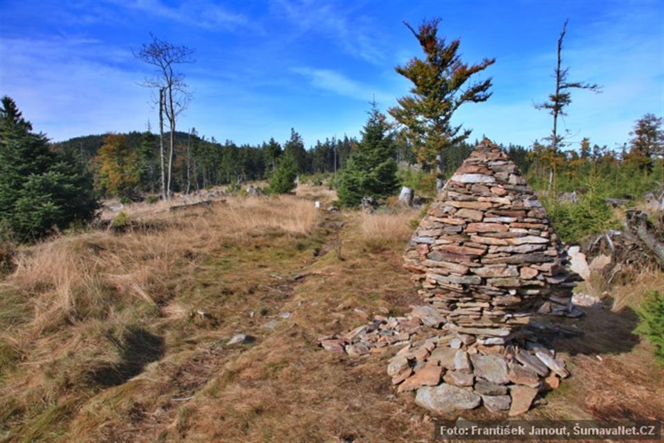 "Fotky z mého pohledu vystihují podzimní náladu a jedinečnost krajiny na této jedné z nekrásnějších hraničních šumavských hřebenovek. To vše doplněné a jakoby záměrně, ale přesto bezděčně sladěné s hraničními mezníky od čísla 23 (na Velkém Ostrém) do čísla 30 (na Svarohu)."