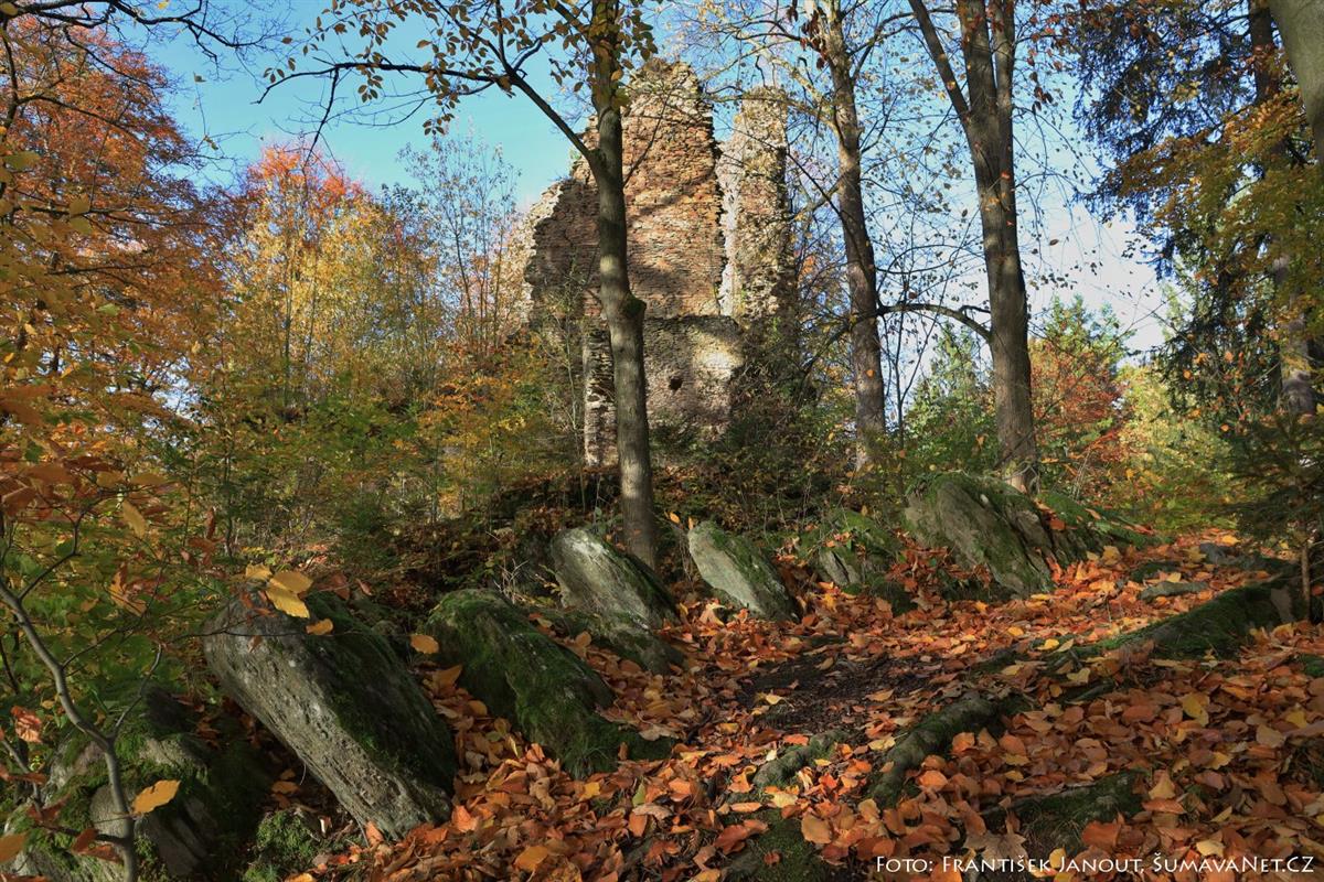 Zřícenina hradu Pajrek a okolí v barvách podzimu
