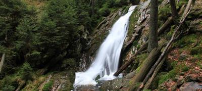 Bílá strž (Klammerloch) ist der höchste Wasserfall des Böhmerwalds und befindet sich im Tal des Weißbachs 940 m ü.M.