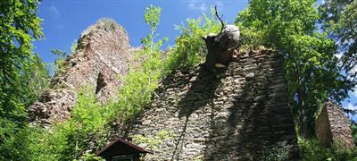 Es handelt sich um die Ruine einer der ältesten Burgen in Böhmen (erste Erwähnung 1287) und ein romantisches Schloß, das als erstes im neugothischen Stil in Böhmen in den 30er Jahren des 19. Jhs. entstanden ist.