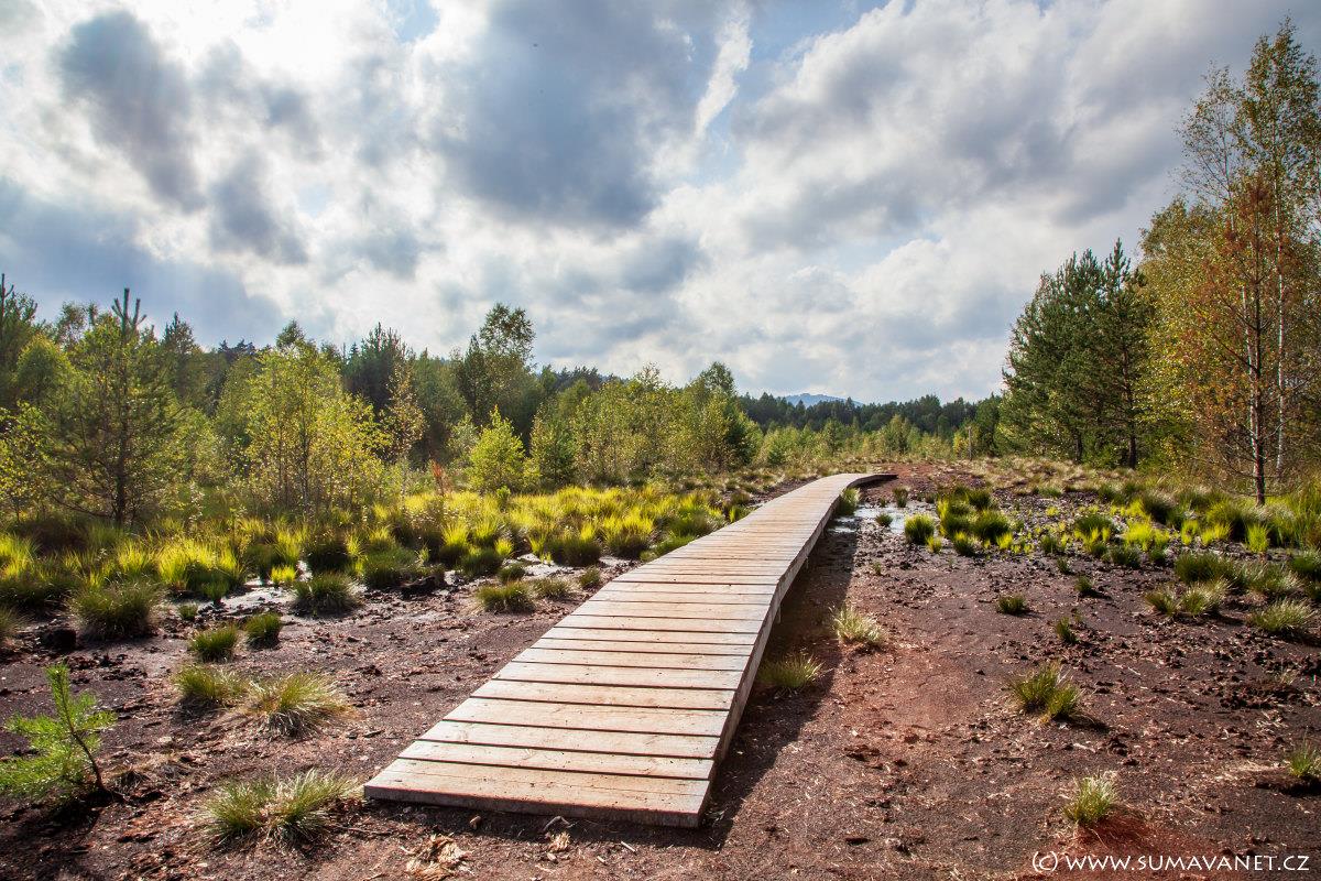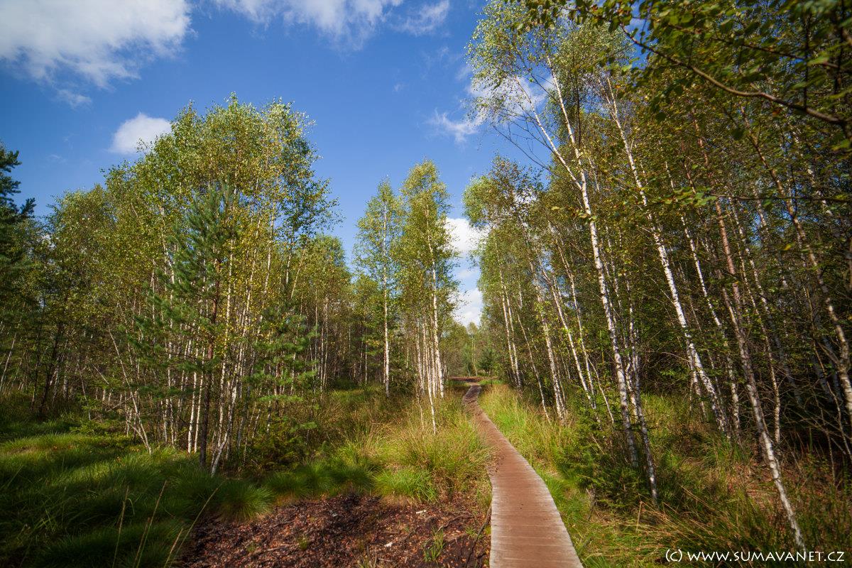 Cesta vede z části po povalovém chodníčku a z části po měkkém řašelinovém podloží. Z 9,2 metrů vysoké dvoupatrové vyhlídkové věže lze shlédnout celou plochu rašeliniště. Lze dohlédnout na Stožec, Boubín i na Želnavskou pahorkatinu.