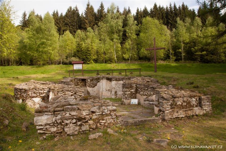 Na původních základech kaple zbourané v roce 1958 byla odstraněna suť a odhaleno zachovalé obvodové zdivo do výšky cca 2 m, část kamenné podlahy, dále se našly žulové zárubně vchodových dveří, drobné kovové předměty a kamenná deska s vypouklým znakem erbu Krakovských z Kolovrat s letopočtem 1731. Byl zde vztyčen dřevěný šest metrů vysoký kříž a informační tabule.