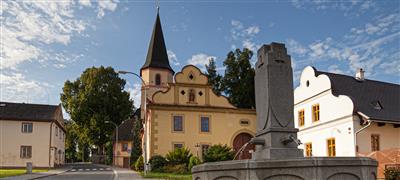 Uprostřed náměstí stával filiální kostel Čtrnácti svatých pomocníků, postavený stavitelem italského původu Markem Antoniem Gilmettim a vysvěcený v roce 1712.